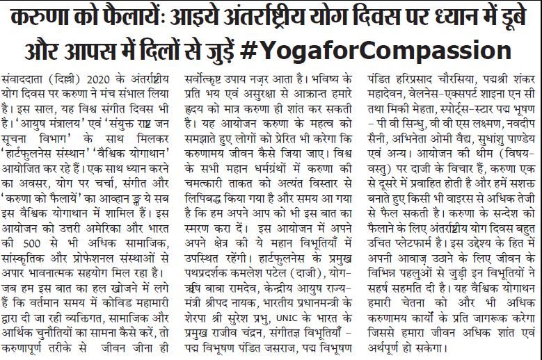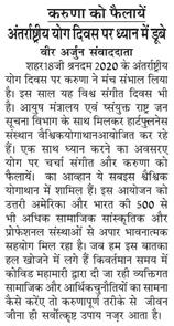 In the current troubled times, the highest service that we can do for our community is to bring everyone together in unity and solidarity, to face the existential challenge posed by COVID. What better opportunity than the International Day of Yoga to send out the clarion call for Unity to humanity at large? Compassion is one of the root principles of Yoga. It is compassion that unites us. Compassion is contagious and transmits faster than any virus – making us stronger.