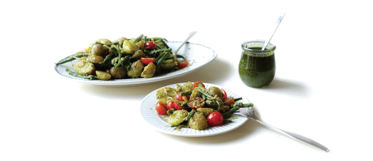 BABY POTATO SALAD WITH GREEN BEANS, TOMATOES AND ONIONS
