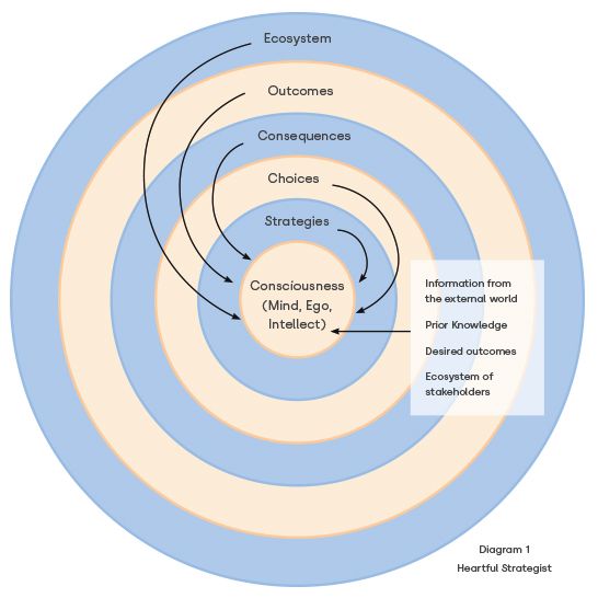 These examples illustrate the relationship between the consciousness level of one individual and how it flows out in terms of strategic choice, that leads to consequences, that lead to outcomes, that can change a whole ecosystem. In subsequent articles we will explore how a Heartful Strategist can work on refining their consciousness level to make strategic choices that not only benefit them, but also deliver the best possible benefits to the broadest possible set of inter-related ecosystems.